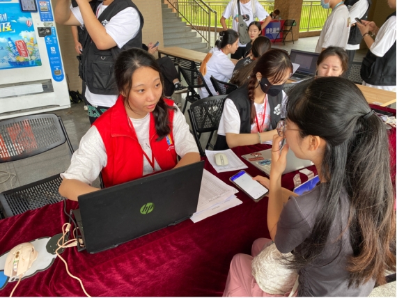 学生党支部的党员同志们身着红色志愿者服装,以满腔热情投入到迎接新生、入校引导、行李搬运、咨询服务等工作。在党员同志的引导下,新生们陆续地到达学院大厅办理入学手续,党员同志们耐心解答,细心引导。党员同志们用他们的实际行动为新生们保驾护航和高度负责的工作态度为新生入学提供了有力的保障。