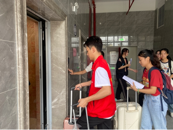 在迎新过程中,党员同志与新生们亲切交流,对他们提出学习生活的问题进行了耐心地解释,关切地询问了新生们到校之后的具体情况。党员同志们亲切的问候,让新生们感受到学院的温暖。