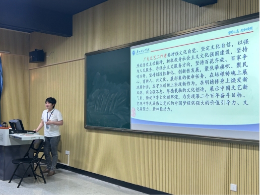 (郑紫婷)为进一步提高入党积极分子的思想政治觉悟,保证积极分子发展的质量,威廉希尔williamhill中文开展入党积极分子党课。2023年10月31日,威廉希尔williamhill中文党总支副书记全艳为入党积极分子讲授有关《习近平给广大文艺工作者提出的五点希望》的党课。