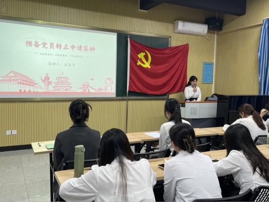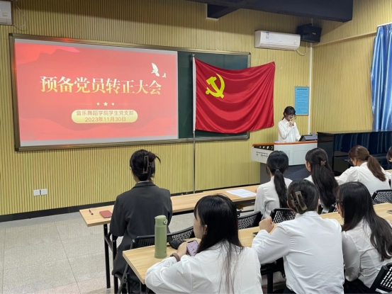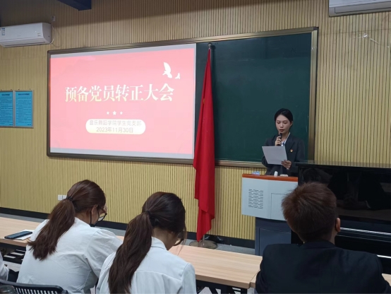 会上,预备党员孙艺稀、何琳、彭丽苹依次汇报预备期间在学习、工作、生活、思想上的表现,三名同志对自身的表现进行总结,表达了入党的强烈意愿和坚定决心。随后,学生党支部书记潘栩涵老师报告孙艺稀等三名同志在预备期间的教育考察情况,对孙艺稀等三名同志在预备期间的学习情况、工作能力、思想状况等方面给予客观的评价,同时针对她们的问题提出建议。党支部认为三位预备党员已具备正式党员条件,建议如期转正。经过逐一无记名投票表决,大会同意孙艺稀等三名同志按期转为中共正式党员。