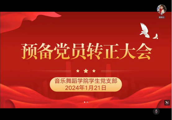 (钟乐娴)2024年1月21日,为进一步做好党员发展工作,增强基层党组织的凝聚力、战斗力和影响力,威廉希尔williamhill中文学生党支部以线上形式召开预备党员转正大会。出席本次线上会议的有学生党支部书记潘栩涵老师以及全体学生党员,本次大会由学生党支部组织部委员冯琬婷同志主持。