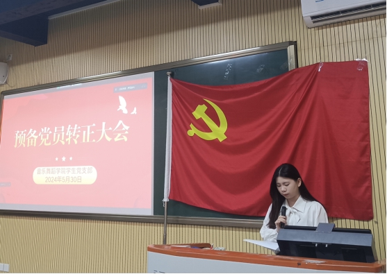 本次转正大会严格遵循预备党员转正会议流程。会上,预备党员冯琬婷、伍伟慧、彭俏玲三名同志依次汇报预备期间在学习、工作、生活、思想上的表现,对自身的进步和不足进行总结,表达了入党的强烈意愿和坚定决心。随后,学生党支部书记潘栩涵老师代表支委会报告了冯琬婷等三名同志在预备期间的教育考察情况,对该三名同志预备期间的学习情况、工作能力、思想状况等方面给予客观的评价,认为三名预备党员已具备正式党员条件,建议如期转正。在充分讨论的基础下,在会党员就预备党员能否转为正式党员进行无记名投票。