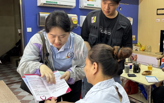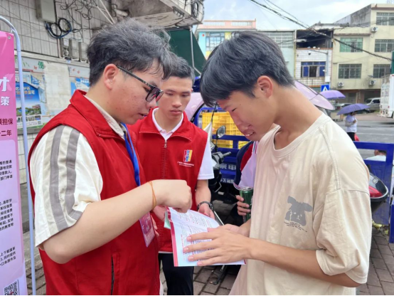上午9点,资助团队在当地政府的带领下来到了集市。待工作人员布置好摊位后吸引了许多村民驻足。不少村民前来咨询相关资助政策,队员们为他们详细解读资助政策,让他们了解国家资助政策的优势,鼓励有需要的学生和家长积极申请资助。本次摆摊有利于推动国家资助政策家喻户晓、深入人心。在黄老师带领下,部分队员走进集市、拜访商铺。资助队伍来到了一家电器商店,与商店老板亲切交谈。在交谈中我们了解到她的孩子刚完成大学志愿的填报,并且有去参军的意愿,黄老师便为她发放《广东省学生资助政策简介》手册,详细介绍《高校学生应征入伍服兵役学费补偿和国家助学贷款代偿及退役复学后学费减免》的具体内容,包括申请条件、申请流程、还款事项等。商店老板表示之前并没有了解过国家资助政策,通过本次活动后清楚地了解了有关政策,并对资助队表达了感谢。资助小队的队员们还来到了王阿姨店中,在交谈过程中,我们了解到她的女儿是一名大学生,成绩优秀,获得过“励志奖学金”。对于国家资助政策,她表示非常认同,她认为国家资助政策可以鼓励她女儿更加努力地学习。通过本次交谈可以看出国家资助政策能引导青年学子树立远大志向、筑牢理想信念,点燃希望的火种。