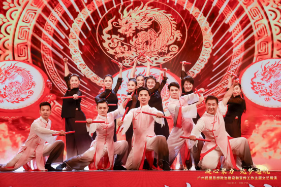 在本次文艺展演中,王恺副院长参演了第一篇章“凝心聚力”中的英歌舞节目《一身正气》,充分展现了中华优秀传统文化魅力和岭南文化特色,表达了对伟大祖国的深情厚谊和美好祝愿。同时,这也体现了我校教师队伍的高素质专业水平与良好形象。