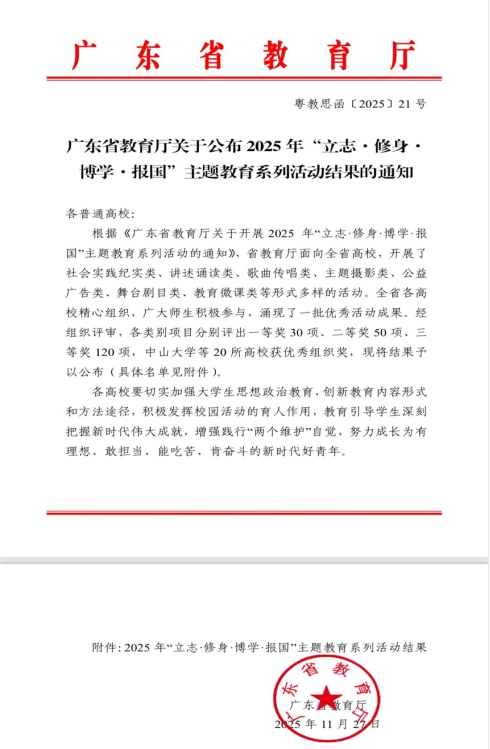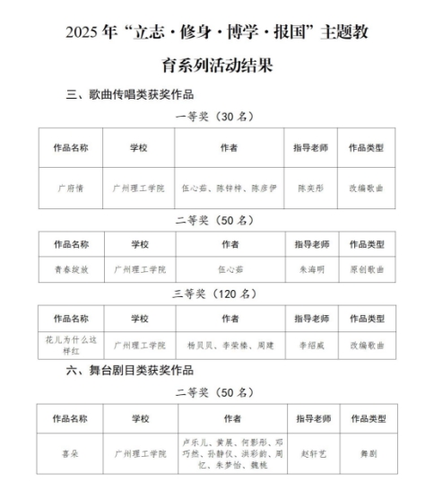 近日,2025年“立志·修身·博学·报国”主题教育系列活动获奖结果揭晓,威廉希尔williamhill中文,威廉希尔williamhill中文学子在歌曲传唱类、舞台剧目类比赛中表现亮眼,一举拿下多个奖项。