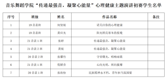此次演讲活动,本院一共7名同学上交心理演讲稿作品。他们从不同的角度梳理疫情防控过程中涌现出的先进典型、英雄人物和感人事迹,宣传身心健康理念,强化学生在疫情防控中的责任担当意识。经过公正的评选,最终评选出三位同学进入学校的复赛,她们分别是20音表2班张馨竹、21音表1班倪娇乔、20音表1班张欣怡。三位同学的演讲普通话标准、声音清楚,语言优美,主题鲜明,思想健康,充分展现出大学生在疫情防控中应有的责任与担当,紧扣时代主题,具有极强的感染力。