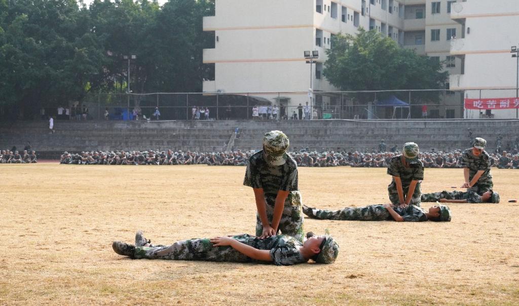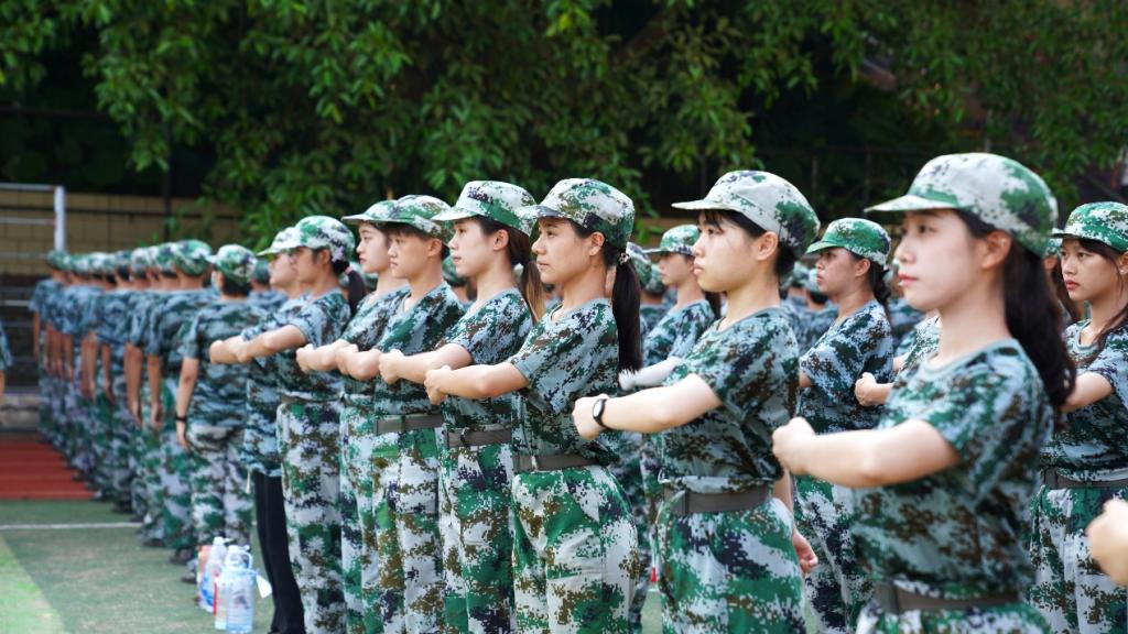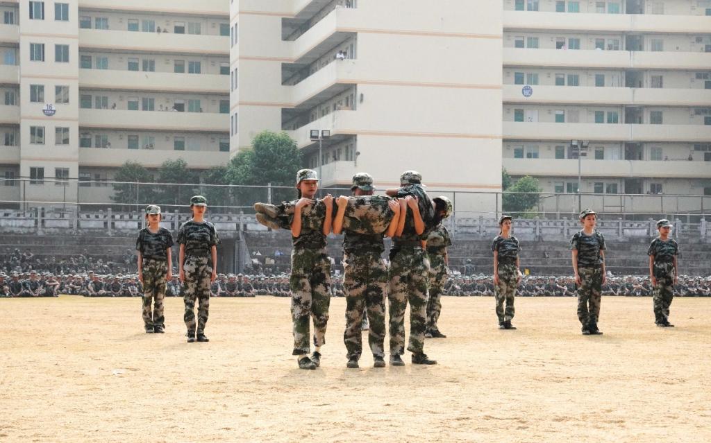 在嘹亮的国歌声中,五星红旗冉冉升起,结营仪式拉开了帷幕。全场师生激情昂扬,齐声高唱国歌,青春在激情中燃烧,辉煌在壮志里铸就。伴随着激昂的进行曲,各学院新生代表方队踏着整齐的步伐走向主席台,新生军训结营汇报表演开始。结营汇报表演中,分列式方队、匕首操方队、花样方队、医疗方队等方队的同学们以青春昂扬的姿态得到了主席台上领导们的鼓掌喝彩。