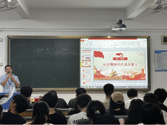 主题班会上,辅导员老师讲解红军长征的客观原因和主观原因,讲述了红军二万五千里长征路上关乎生死的重要战役和可歌可泣的英雄史诗,进一步挖掘长征精神的内涵:乐于吃苦,不惧艰难的革命乐观主义;勇于战斗,无坚不摧的革命英雄主义;重于求实,独立自主的创新胆略;善于团结,顾全大局的集体主义。引导学生学习并弘扬好伟大长征精神,坚定理想信念,不怕任何艰难险阻、不惜付出一切牺牲,继续艰苦奋斗、奋勇前行,走好新时代长征路。