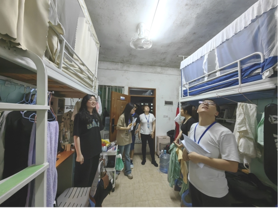 走访期间,各位老师与学生细心交流,贴心关怀。他们询问了学生的学习、生活情况,还特别关注了大家的心理健康状态,鼓励同学们在遇到困难时要勇于寻求帮助,多与辅导员沟通交流。此外,辅导员对宿舍的安全隐患进行了细致的排查,对宿舍卫生状况、用电情况、硬件设施进行了细致的检查,现场对有问题的宿舍进行登记并对学生进行了安全教育,提醒大家要时刻保持宿舍环境的整洁与安全,共同维护一个安心的学习生活环境。