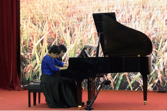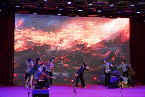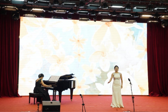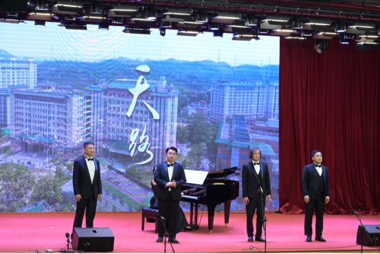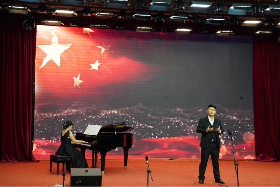本次晚会以气势恢宏的群舞《锦绣中华》拉开序幕,舞者们身着华丽的服饰,以优美的舞姿和精湛的技艺,展现了中华大地的壮丽景色和灿烂文化,让观众仿佛置身于一幅流动的历史长卷之中。男声独唱《黄河颂》以其激昂的旋律和深情的演唱,歌颂了中华民族的母亲河,表达了中华儿女对祖国的深情厚谊和崇高敬意。古筝重奏《战台风》以其磅礴的气势和坚韧的力量,展现码头工人们在困难面前不屈不挠的精神。男声四重唱《天路》唱响了青藏铁路的壮丽史诗,传递了中国人民对美好生活的向往与追求。钢琴四手联弹《翻身的日子》则以欢快的节奏和明快的旋律翻身做主人的喜悦与自豪。双人舞《向阳》充满生命力和希望,展现了青年一代积极向上、勇往直前的精神风貌,象征着祖国的花朵在阳光雨露下茁壮成长。女声独唱《玛依拉变奏曲》具有独特的民族风情,唱出了人们积极乐观的生活态度,展现了中华文化的多样性和包容性。器乐重奏《云宫迅音》亦被广泛誉为“西游记序曲”,它的旋律早已镌刻在亿万观众的心间,让观众感受到了音乐的无限魅力。男声独唱《相国万岁》以其激昂的旋律和深情的歌词,表达了对伟大祖国的无限热爱和崇高敬意,让人心潮澎湃,热血沸腾。群舞《活着1937》则以震撼的视觉效果和深刻的情感表达,再现了那段艰苦卓绝的抗战岁月,让人铭记历史,珍惜和平。女声四重唱《喜事好运滚滚来》以其欢快的节奏和温馨的歌词,为晚会增添了一抹节日的喜庆氛围,传递了美好的祝福与愿望。最后,晚会以全体演员与观众共同合唱的《不忘初心》作为压轴节目,歌声响彻云霄,表达了全国人民对祖国的深情厚谊和不忘初心、牢记使命的坚定信念。整场晚会精彩纷呈,不仅让师生们感受到节日的喜庆和文化的魅力,更传递了积极向上的正能量和爱国情怀,也让他们更加坚定了为实现中国梦贡献自己力量的信念。