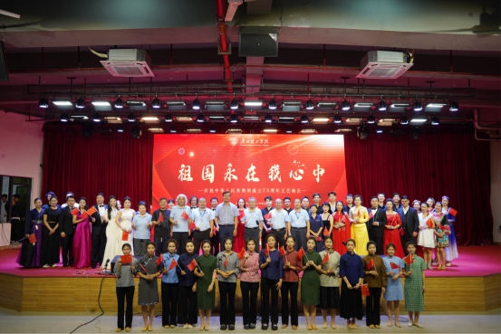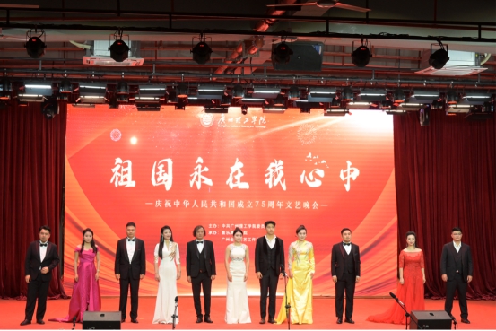 (庞妙怡)为热烈庆祝中华人民共和国成立七十五周年,讴歌祖国七十五年辉煌成就,弘扬爱国主义精神,凝聚奋进力量,威廉希尔williamhill中文于2024年9月29日在十三栋一号报告大厅举行“祖国永在我心中”—庆祝中华人民共和国成立七十五周年文艺晚会。校长胡社军,党委书记黄圣诚,常务副校长黄南松,副校长肖海、张世梅、张志红以及各学院师生齐聚一堂,共享盛宴。