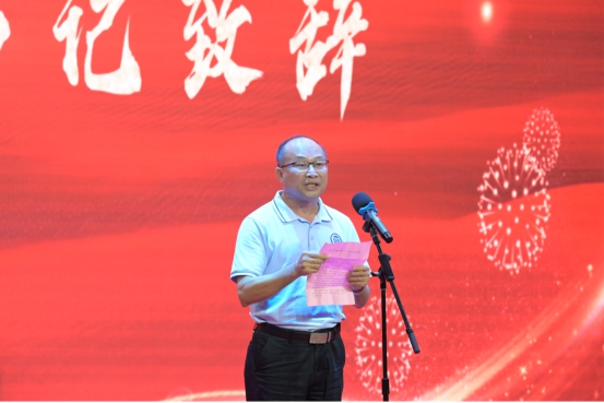 晚会正式开始前,党委书记黄圣诚致辞。他代表学校向大家致以节日的问候和诚挚的祝福。他表示,回首新中国七十五年来走过的壮阔征程,新中国这艘巍巍巨轮乘风破浪,实现了中华民族从站起来到富起来到强起来的伟大事业,学校坚持以习近平新时代中国特色社会主义思想为指导,学习贯彻党的二十届三中全会精神和全国教育大会精神,落实立德树人根本任务,为党育人、为国育才,以高质量的党建推动学校高质量发展,办人民满意的高等教育。