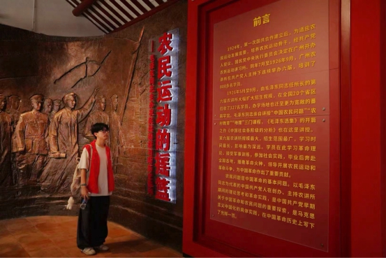 进入馆内,学生党员有序参观了各个展厅,详细了解了农讲所创办的社会背景,包括当时国内尖锐的阶级矛盾、农民困苦的生存境遇以及农民运动的发展状况,深入剖析了农讲所创办的时代意义。学生党员还近距离观看了历史文物、珍贵图片和文献资料,在细节中感受先辈们的革命初心与伟大精神。活动打破传统的单向学习模式,采用互动研讨的创新学习方式进行。学生党支部书记刘国杰老师结合农民运动的历史背景,带领学生党员开展深入贯彻中央八项规定精神学习教育,党员们各抒己见,展开深入探讨,深化党纪学习教育。