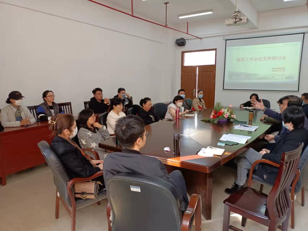 2022年1月7日,学校召开2022年本科教学工作会议,当日下午威廉希尔williamhill中文召开教学工作研讨会,学院全体教师、教务处纪秀琳老师和刘振英老师出席本次会议。