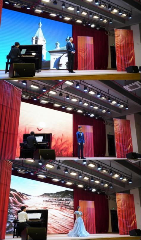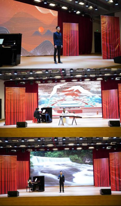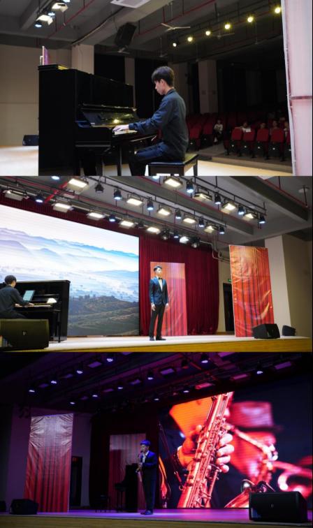 蔡汶佐同学带来的《月光奏鸣曲第三乐章》,琴声抒情动听,灵动的音律不绝与耳。而陈大帆同学独唱的《啊中国的土地》表达了对我们祖国深沉的爱以及能成为祖国儿女由心而发的骄傲。接着钟俊康同学带来的萨克斯独奏《阿拉伯风》,演奏出了异域风情中独特且神秘的音律魅力。李沃儿同学演唱的《锦瑟》,循序渐近的演唱给观众带来了不一样的情感体验。华飘然同学的《云裳诉》展现了古风的悠扬自得、松紧有度与淳朴。林信校同学的演唱的《白头吟》,演唱的韵律中我们深切感受到,爱情应该像山上的雪一般纯洁,像云间月亮一样光明。陈瑞琦演唱的《ich grolle nicht)》带我们经历了一次Pavel Lisitsian的内心深处,独特的风格让我们感受到生活的窒息,现实的无奈,但仍然对未来充满憧憬以及不断抗争的坚强品质。由吴思翰同学演唱的《我是一个快乐的捕鸟人》,唱出了诗人对美好生活的向往之情,深情动人。最后由李美熹同学演唱的《黄河怨》,完美演绎出了当时中国积贫积弱大环境下弱女子的无奈与悲惨,对现实的哀怨,更表现了弱女子“杀”苦难,“杀”罪恶的决心,令人动容的情感正式为音乐会拉上帷幕。