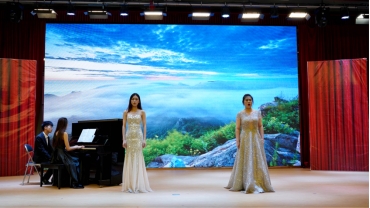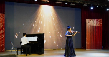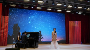 这场精彩纷呈的音乐会首先由盘小铷、陈果同学演唱的《世间哪有这样的情》开场,钢琴优美的旋律结合歌声表达出了军民水乳交融、生死与共的沂蒙精神;接下来是邓思铭、姚莉晴同学演奏的钢琴四手联弹《演艺人》,一股浓浓的音乐气息顿时扑面而来,不规则的重音效果和交错的拍子,呈现出了欢乐活泼的爵士乐风格;随后梁唐诗同学带来的独唱《等着我亲爱的人》,满怀深情地演唱和演绎又进一步传达升华了沂蒙精神;最让人印象深刻的是陈艳梅、王建仁同学的男女高音二重唱《灿若星辰的目光》,将人物关系的情感心理活动展现得淋漓尽致,羞涩中带有一丝俏皮,微妙的感情甚是激昂!紧接着谭惠文同学演奏的小提琴曲《爱的致意》,典型的“小夜曲”风格,轻松而典雅,音乐温馨甜蜜,旋律委婉动人,让人一听倾情;音乐会上赵晋和杨紫萦同学演唱的《一半》以中国传统音乐与西方近现代音乐语汇的交织碰撞,展示出颇具文化质感的民国风韵,让人陶醉其中;最后是刘泽钧同学弹奏的《冬风》,让人耳目一新,突破传统曲调模式的束缚,在蕴含着深刻的情感和气势蓬勃的演奏中,这期音乐会画上句号。