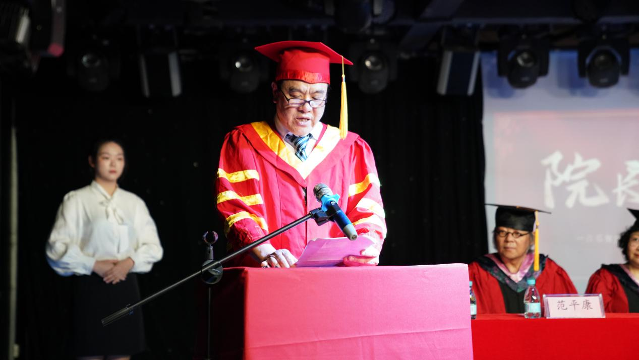 张延春院长致辞,向即将踏上新征程的毕业生们送上美好祝愿,希望大家在走向社会以后要努力做到,不断地学习,把学习当作一项重要的事情来做;做一个脚踏实地的人,认真坚守岗位;学会辩证的思维方法看问题,善于透过现象看本质。