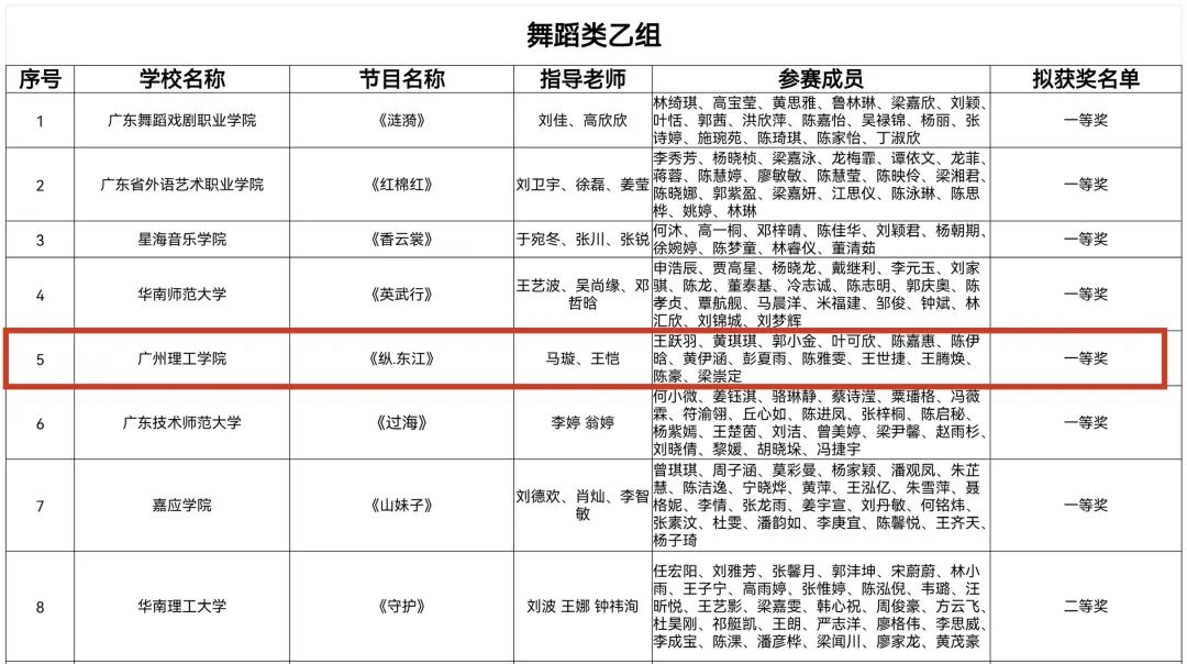近日,广东省教育厅公示《全省大学生优秀艺术团队交流展示活动》获奖情况。威廉希尔williamhill中文马璇、王恺老师共同编创指导的作品《纵·东江》荣获一等奖;作品《回家》《落水天》(指导老师:陈奕彤、钢琴伴奏老师:刘俊)和作品《丝路驼铃》(指导老师:喻娇)获二等奖。