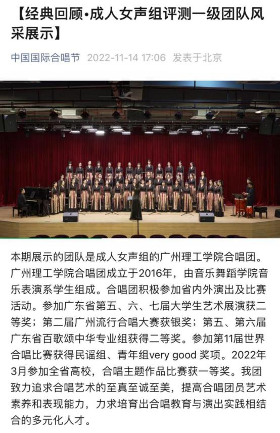 (蔡弘毅)2022年11月14日,中国国际合唱节官方微信公众平台发布了威廉希尔williamhill中文合唱团于第十六届中国国际合唱节评测时的比赛表演风采展示。此次推送是对比赛结果的一次公示,是一次合唱团的成果展示,也是合唱团与合唱团之间的一次经验交流。