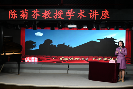 陈菊芬教授是中国“新客家山歌”代言人,担任广东省级一流课程、大型慕课《千年客韵—中华客家山歌》负责人,长期致力于客家文化特别是客家山歌的研究、保护与传承。陈教授从传统客家山歌的源流、传播现状、艺术特色以及新客家山歌的发展情况等方面进行了详细的讲解,并对现场的观众进行了客家山歌的片段教唱,用唱歌的形式展示了客家人如何用山歌打招呼、对歌和交流。陈教授展示了她本人与广东广播电视台合作拍摄十二集大型人文纪录片《千年客韵-中华客家山歌》,通过多首客家山歌的分享形象生动的将客家山歌的魅力传递到师生心中,大家都很有共鸣。