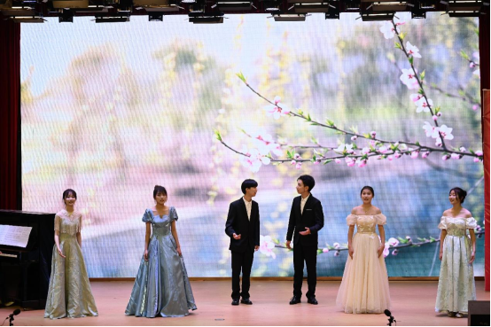 伴随着主持人激情满满的开场白,音乐会就此拉开了帷幕。首先由邓毅杰同学为我们带来爵士鼓独奏《four》,给老师和同学们进行了预热,让我们对接下来的音乐会更加充满期待;作品《南屏晚钟》描述了一位年轻少女的相思之情;《.City of stars》表达出男女主人公在追求人生梦想时的那份孤单、坚定和期许;《彩云追月》这首曲子是描写人们心目中的月宫仙境,两位同学的表演,彰显了典型的广东民间音乐风格,让同学们陶醉其中;作品《Turkish March》在吕迪莎、李子妍两位同学的手中演奏得更是精彩绝伦;独唱《Parla Piu Piano》以黑社会和交易的故事作陪衬,且以其清澈如甘泉的旋律反复歌咏爱情;小提琴独奏《中原畅想曲》演奏出浓郁的河南地方风味;《赤子情》抒发了赤子们对祖国的思念,讴歌对祖国的眷恋之情;四手联弹《森林狂想曲》精彩的演绎仿佛让同学们置身于森林中;《蝶恋花》让我们听见了作者心中无尽的空虚惆怅;混声小组唱《你来了》这首抒情歌曲,倾诉了党中央对广西人民真挚的情怀以及各族人民对党和生活的热爱之情;钢琴独奏《爱之梦》音乐深情婉转,抒写弗莱里格拉特诗中的意境;小组唱《莫尼山》仿佛让大家置身于连绵不断的大山,宽广无垠的草原;最后,全体同学合唱的《我爱你,中国》,歌曲表达了对祖国的热爱,全体同学气势磅礴,饱含深情的演绎了这首歌曲,令人久久不能忘怀。