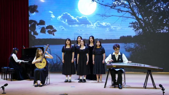 伴随着主持人激情满满的开场白,音乐会就此拉开了帷幕。首先伴随声声民歌走进各民族人民的精神世界。女声独唱《龙船调》,古筝独奏《西部主题畅想曲》和《瑶族舞曲》带我们领略了各地的民俗风情。作品《静夜思》和《月亮代表我的心》都表达着唯有在夜的静谧中我们方能拾起床前的明月,望一望明月,感受思念之情。《青花瓷》体现了演不尽古风的流光溢彩。《兰亭序》演奏出了唱不完古韵的悠扬铿锵。小组合唱《青玉案·元夕》带我们重温千年的泱泱古风。在人生的旅途中,感情就是那盛开的花朵,许多时候,只在与你擦肩而过的瞬间绽放。流行演唱《失落沙洲》表达了忧伤,懊悔的情绪,暗示着内心的寂寞与凄凉。《可惜不是你》表达了浓浓的痛惜之情,唱出了昔日恋人但是有缘无份最终没能在一起的惋惜之情。乐队演唱《说了再见》表达了浪漫和华丽兼具的意思,四手联弹《Trouble Is A Friend》告诉大家遇到困难不要畏惧,要逆境而上,不被困难打败。初心是南湖上一条斑驳的小船,初心是喷薄而出的一轮朝阳,小组合唱《不忘初心》告诉大家无论我们走得多远都不能忘记来时的路。
