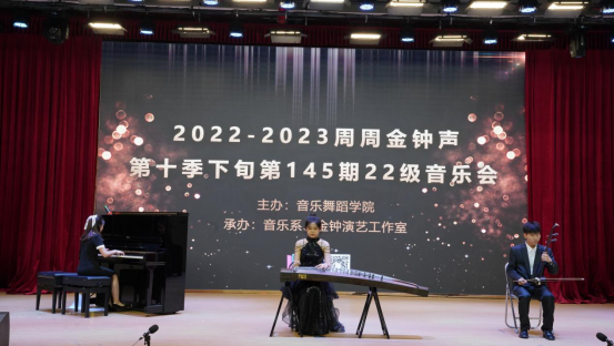 (王媛)2023年4月19日,2022-2023周周金钟声第十季下旬第145期22级音乐会在13栋报告大厅隆重举行,威廉希尔williamhill中文副院长刘福瑞、李丽丹,音乐系主任钟艺娜、副主任栾鸾,指导老师张隆隆、张智、李子龙、梁泰迅、张颖老师以及辅导员张晨老师和同学们一同欣赏这场精彩的表演。