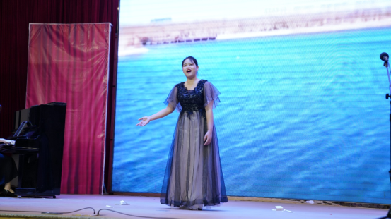 伴随着主持人激情满满的开场白,音乐会就此拉开了帷幕。首先由20级音表1班的全体学生为我们带来歌剧《运河谣》同名唱段《运河谣》,给现场的观众们进行了预热,让我们对接下来的音乐会更加充满期待;由林信校、华飘然等演员表演的作品《枉凝眉》+《晴雯歌》带我们体会了大观园的悲与欢;由李沃儿,蔡弘毅等同学演唱的中国艺术歌曲联唱里面有中国著名的艺术歌曲如《大江东去》、《黑雾》等,带我们体会了数千年源远流长的华夏民族精神和音乐融合的魅力;邓仁仁、陈影雪等演员带来的小组唱《梨花又开放》借梨花的开放来表达对母亲的怀念、对故乡的怀念、对童真的怀念;由钟欢 冯樱露等演员带来的民族歌舞《梦回土家》带我们回到魂牵梦绕的土家,让我们随着悠扬的琴声和欢快的鼓声走进这个古老的民族;音乐剧《阳台》出自音乐剧《罗密欧与朱丽叶》,李沃儿和付榆两位同学的表演让我们感受到男女主人公诚挚的爱以及他们爱情的力量;张馨竹、胡容畅等同学演唱的歌曲《anther day of sun》出自《爱乐之城》,也是电影的开头,经过了改编,讲述我们对于未来的展望和对校园生活的喜爱;最后全体20级1、2班的同学朗诵《百年觉醒,浴血忠魂》,20级音表1、2班的同学们用自己的理解去诠释在我党百年来,抛头颅洒热血的英雄人物,令人感触良多。