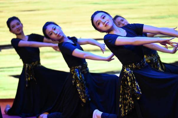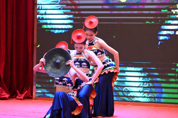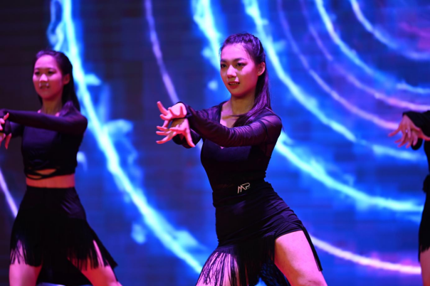 首先拉开序幕的表演是群舞《茉莉花开》,绿黛新颜,手持流光,梦里红尘,茉莉花开。于时光的长廊中细品夏日的清新,在浓墨重彩间广舒长袖霓裳羽衣,在素笔勾勒处凌波微步曼舞轻歌。接下来,静谧的竹林深处,傣家少女举起竹笠帽,来遮掩自己憧憬美好未来而又羞于表达的少女情怀。谢水清,陈玉瑶,陈宇曦三位同学的《般般入画》,带观众们一同领略傣家风情。青春是充满阳光的,青春有无畏的精神,今天我们用青春的朝气将激情的火焰点燃,在这热辣的夏天让我们一起舞动释放自我的魅力。程兆欣,万佳俐,高湘,高慧妍四位同学带来的《Forever young》,曼妙的身姿、精巧的舞步,在视觉上和听觉上都给观众带来了绝佳的享受,赚尽了现场同学们的掌声,将整个会场气氛又一次推向高潮。下面,邱栩琦,贺凤鸣,周钰,高甜甜踩着拉丁舞步,为我们带来了一种源自北美的民间舞蹈《shoot》,它舞步轻快,浪漫而富有活力。最后是22级舞蹈2班全体同学带来的蒙古串烧《草原礼赞》,草原辽阔,让人魂牵梦萦;骏马奔腾,撼人心驰神往;飞鹰翱翔,既人心向往之。下马放歌,舞蹈作伴,挥手、跳跃间尽显蒙古族姑娘的热情淳朴之气质、直爽豪放之洒脱。