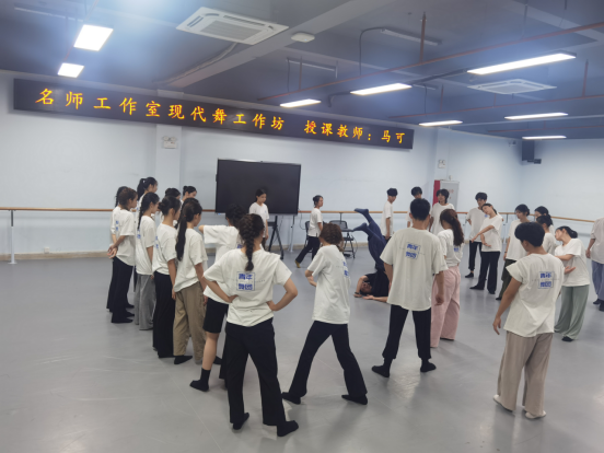 2023年7月11日晚,由广东现代舞团驻团编舞马可老师为名师工作室开展现代舞工作坊,助力现代舞艺术走进校园,吸引众多学生共同探索舞蹈的神奇魅力。
