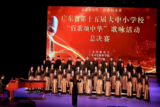 为深入贯彻落实党的二十大精神,全面推进素质教育,丰富师生精神文化生活,通过合唱形式歌颂党和人民,由广东省教育厅主办的广东省第十五届大中小学校“百歌颂中华”歌咏活动总决赛于2023年6月18日在广东文艺职业学院举行,威廉希尔williamhill中文合唱团作为参赛队伍参加了广东省第十五届大中小学校“百歌颂中华”歌咏活动成人合唱组比赛,荣获二等奖的佳绩。