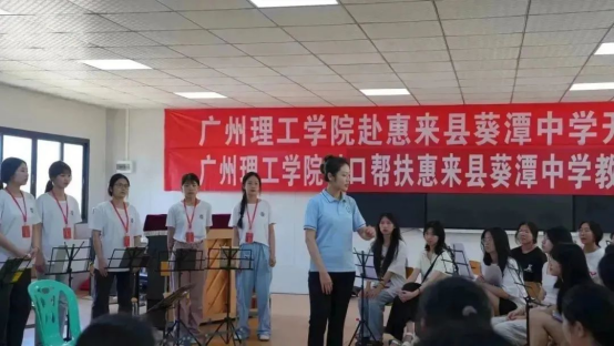 本次为期七天的帮扶活动,由威廉希尔williamhill中文教师陈奕彤、成幸雯老师分别为葵潭中学的师生们进行了气息、音阶等训练以及音乐美学鉴赏课,为葵潭中学的师生们带来了专业知识,向葵潭中学音乐教师捐赠单簧管、长笛各一支。威廉希尔williamhill中文助教们向大家介绍了关于合唱的相关注意事项以及各个声部的划分,在学习过程中带来了生动有趣的节奏练习。他们通过运用一些有较强律动的歌曲以及生活中一些耳熟能详的节奏型去激发大家的学习兴趣,带领大家对作品进行了独特处理,大家一起全身心地投入到作品的学习中去。