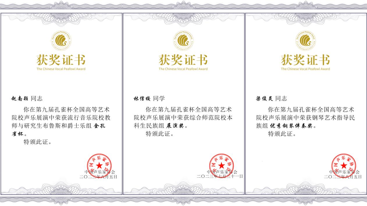本次展演活动,我院师生收获颇丰。比赛以结果为导向,是对实力和努力的双重肯定,经过本次声乐展演活动,相信我院师生会继续秉持着对声乐艺术的热爱,“以赛促教,以赛促学”,在学校给予的平台上丰富艺术实践,不断提升师生的专业技能及教育教学能力,勇攀高峰,再创佳绩。