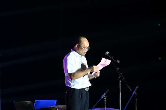 晚会正式开场前,由党委书记黄圣诚进行致辞。黄书记对新生们的到来表示热烈的欢迎,并给予了美好的祝愿。黄书记向新生们介绍了学校的发展历史和办学特色,对新生发出了期许,希望新生们充分利用学校学习资源,不断学习,积极进取,不负韶华!