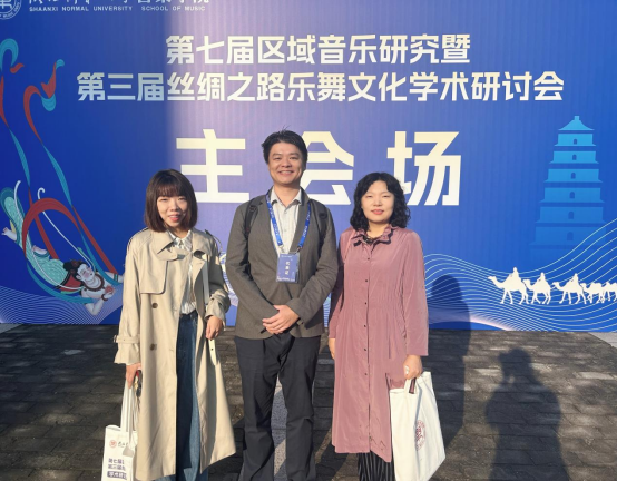 (唐懿倾)10月13日至15日,威廉希尔williamhill中文,威廉希尔williamhill中文青年博士杨叶青、唐懿倾、刘家麒、王泓运应邀参加了由中国音乐家协会主办,陕西师范大学音乐学院承办的第七届音乐研究暨第三届丝绸之路乐舞文化学术研讨会。 此次研讨会适逢‘一带一路’重大倡议提出十周年的重要历史时期,旨在回顾中国区域音乐及乐舞文化的过去与发展,聚焦丝路乐舞文化,围绕东西方音乐舞蹈文化进行全方位、多视角探究,对于深刻理解“两个结合”,传承中华优秀传统文化,促进学术交流互鉴,推动西部地区艺术学学科高质量发展具有重要意义。