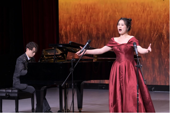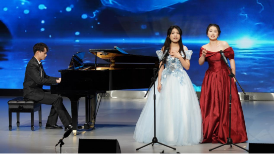 音乐会接近尾声时,观众们欣赏到了莫扎特的经典唱段《女人善变》以及一首《爱永在》,熟悉的旋律、戏剧性的声音给在场的每一位观众都留下了深刻的印象。紧接着,两首女声独唱《蝶恋花》和《七步诗》让观众们继续沉浸在音乐与诗歌的世界中,尽情享受着每一个音符。
