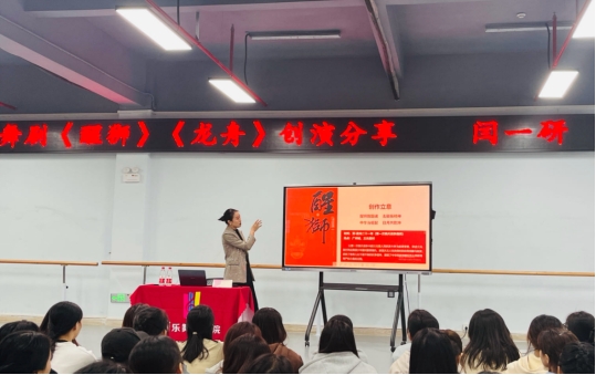 讲座终了,现场师生与闫老师进行了深度交流,闫老师点评了学生们所表演的舞蹈作品,并对其提点指导。通过此次讲座,师生了解了优秀舞剧创作的幕后故事,深入感受到了优秀非遗艺术作品的魅力。通过引导学生走近艺术、开拓视野和提升素养,增强文化自觉,坚定文化自信,不断推动专业学科的发展。此外《论语·卫灵公》里有言:“工欲善其事,必先利其器”,作为一名舞蹈学习者,必须要练就一身扎实的基本功,重视工匠精神,须知“万丈高楼平地起”,我们只有彻底解放了身体,才能做到更好的去展现和传承我们优秀的舞蹈文化精粹,并将它发扬蹈厉,让它在新的时代,焕发出绚丽夺目的光彩!