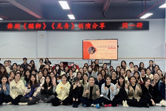 本次讲座闫老师主要从舞剧《醒·狮》《龙舟》中非遗创新亮点,详细地介绍了两部舞剧的创作历程。《醒·狮》以民族觉醒为立意,以传统文化为表达,呈现出独具匠心的艺术气质。舞剧还将南拳中的典型素材加工提炼,创造出“狮舞”的独特舞蹈语汇。并融合了大量南拳、蔡李佛拳、木人桩等动作,刚劲有力,震撼人心。《龙舟》作为中华优秀传统文化的代表之一,凝聚了深厦的历史沉淀和人文精神,根情于中华儿女的血豚之中。龙舟竞渡时至今日已由一项中国传统民间活动演化成国际性的文化盛事和体育寒事,并随之成为国际级别的竞技体育而受到全球服目。如果说《醒·狮》是通过深挖岭南传统文化,以外寇入侵为故事背景,弘扬了民族气节;那么,舞剧《龙·舟》则是通过展示中华文化,以国际龙舟大赛的真实事件为背景,弘扬了时代精神。紧接着,闫老师在讲座中播放了两部舞剧的纪录片,揭秘了两部舞剧幕后的故事。