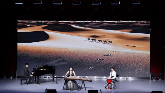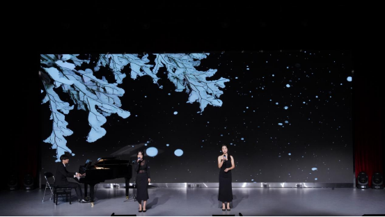 舞台上表演的每一首歌曲都展现了学生们卓越的音乐才华和对多种音乐风格的熟练掌握。开场曲目《鼓上飞舞》节奏明快,将整个音乐会带入了一个轻松欢快的氛围。接着,《越人歌》、《行者》等歌曲通过深情的旋律和悠扬的歌声,唤起了听众对美好时光的回忆。