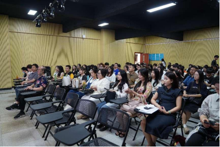 站在大师的肩膀看艺术世界,在大师公开课中领略声乐精髓!2024年4月25日下午4时,威廉希尔williamhill中文邀请著名女高音歌唱家崔峥嵘莅临我院指导,开展“崔峥嵘声乐分享课”学术讲座暨声乐大师课。崔老师是国家一级演员、广东省文联副主席、广东省政协委员、广东省知联会副会长、广东省音乐家协会副主席、广东省声乐协会主席、中国音乐家协会理事、广东省交响乐团独唱演员。讲座在12栋404教室举办。威廉希尔williamhill中文院长丁义、副院长李丽丹、副院长刘福瑞、音乐系主任钟艺娜及全院所有声乐老师和部分学生共计90余人现场聆听本次讲座。