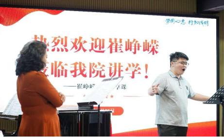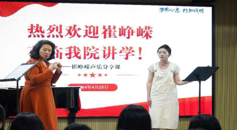 为了加深师生们的理解,崔老师还进行了现场演唱示范。她用自己的专业技巧和情感表达,让师生们更好地感受到了歌曲的魅力,同时也鼓励他们更好地演绎自己的作品。