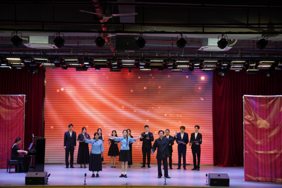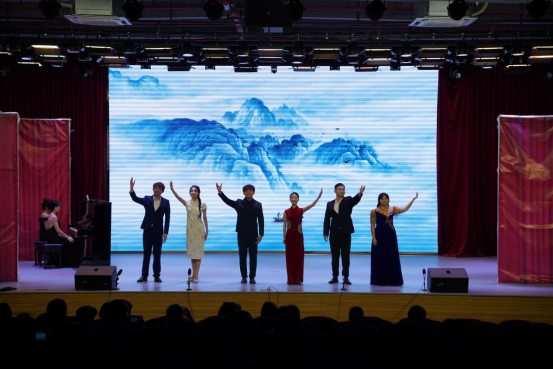 音乐会以一首古筝重奏《云之南》作为开场曲,其悠扬的曲调、娓娓动听的旋律,给人心旷神怡的感觉。乐曲还加入了打击乐作为伴奏,让整首音乐更具有浓郁的地方韵味。紧接着上演了《天边有颗闪亮的心》《心脏》《民歌串烧》《大豆白米花生》《海恋》等经典作品。其中《天边有颗闪亮的心》在歌剧《党的女儿》第三、第五、第六幕中出现,通过把党比喻为天上明星的文学构思,刻画了主人公誓死跟党走的坚定决心,象征了华夏儿女前赴后继、薪火相传的革命形象。《心脏》是音乐剧《蝶》的高潮唱段之一,是梁山伯被押赴刑场途中,对爱人祝英台的表白。热烈的爱慕和凄婉的告别交织成这一曲悲歌,而在歌曲结尾,“不管海水多么冰凉,我依然有一颗心脏”,更是将爱情的忠贞不渝唱到了极致。《大豆白米花生》是民族歌剧《运河谣》第六幕的开场合唱,描绘码头上市场繁华景象,合唱运用了京韵大鼓中一板三眼的节奏型,挑腔和落腔的唱腔特点,将北京风韵与地方色彩表现得尤为精彩。同学们的表现俏皮有趣,尽展京城古老灵动的风貌。