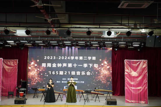 (黃雅倩)2024年5月13日下午16:00,周周金钟声第十一季下旬165期21级音乐会在13栋学术报告大厅如期举行。此次音乐会由指导老师周凌志、黄雅倩、曹金田、覃诗涵倾心指导,21音表的同学们联合参演。音乐会得到了学院领导的大力支持,全艳书记、李丽丹、刘福瑞副院长、钟艺娜主任等领导和老师来到现场观看了本场演出。