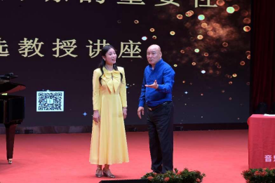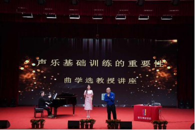 下午3时学术讲座准时开始。曲教授以其深厚的学识和丰富的经验,为师生们带来了一场生动而深入的讲座。他强调,声乐基础训练是每一位音乐学子不可或缺的重要课程,它不仅关乎技术的提升,更关乎艺术表现力的培养。讲座中,曲教授还亲自指导了两位青年教师胡慧洁、黄雅倩以及部分学生,展现了他精湛的教学水平和深厚的艺术造诣。