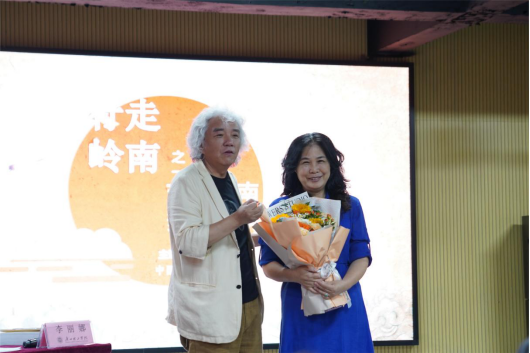 讲座伊始,李教授为大家介绍了民间文化的概念以及民间文艺家协会这个机构在保护及传承中国民间文化中所发挥的功能与作用。作为一名研究广东民间文化的资深学者与专家,李教授结合自身的采风与调研,深入浅出地从“节庆岭南”和“舞动岭南”两个专题为在位的师生进行分享。