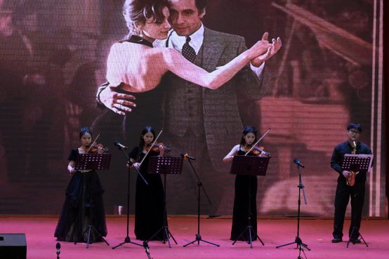 音乐会以一首青春洋溢的《海芋恋》拉开序幕,瞬间将观众带入了一个充满爱与希望的音乐世界。器乐合奏《一步之遥》,旋律中既有爵士乐的优雅又不乏探戈的热情,展现了音乐跨越风格界限的无限魅力。歌剧选段《大豆白米花生》以欢快的节奏和贴近生活的歌词,展现了音乐与生活紧密相连的温馨画面。男女小组唱《我的情歌》则以深情的歌词和动人的旋律,让每一位听众都感受到了爱情的美好与纯真。古筝重奏、 女生小组唱《映山红主题随想曲》以其独特的音色和深情的演绎,将观众带回了那个激情燃烧的岁月。音乐剧选段《雪狼湖》以其深情的歌词与动人的旋律,再次唤起了观众对美好爱情的向往。充满地域特色的原创舞台剧《客家人》是本场音乐会的亮点之一,同学们通过音乐与表演讲述了客家文化的独特魅力与客家人的坚韧不拔。器乐重奏《My heart will go on》《妹娃要过河》《若思念便思念》《往日时光》等节目同样精彩纷呈,各具特色。歌剧选段《伯爵,为何你如此诧异》这首经典作品的精彩演绎将音乐会推向高潮。重唱《敕勒歌》旋律优美动听,歌颂了北国草原壮丽丰饶的风光。合唱《无名的人》以其励志的歌词和动人的旋律,激励着每一位观众勇敢追梦,为音乐会画上了圆满的句号。