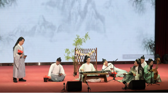 首先由弦歌《诗经·简兮》作为开场曲,这是由张隆隆老师指导21级黄子涵等同学创作的一首原创《诗经》弦歌作品,作品为我们展现出先秦时期的庄严肃穆盛大的乐舞场景以对大舞者英姿赞颂之情。接下来音乐会正式开始,从先秦时期的琴曲《高山流水·流水》和弦歌《诗经·桃夭》、到精彩的琴歌表演唱魏晋时期的《酒狂》、《归去来兮辞》,再到《黄莺吟》、《阳关三叠》、《秋风辞》、《龙翔操》、《良宵引》、《忆故人》,一段跨越千年的古琴与弦歌音乐之旅让大家耳目一新、感受到纯净质朴又深邃厚重的中国古典韵味。