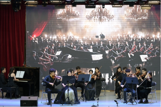 音乐会的最后,何慈庆同学再次演绎了维尼亚夫斯基《d小调第二小提琴协奏曲》,以他高难度技巧上的娴熟掌控,赢得了全场热烈的掌声。此外,钟艺娜、李子龙老师和学生们共同演奏了由陈艺伟老师编曲的《云宫讯音》以及肖斯坦科维奇的《第二圆舞曲》,精彩的配器和默契的合作,为音乐会画上了圆满的句号。