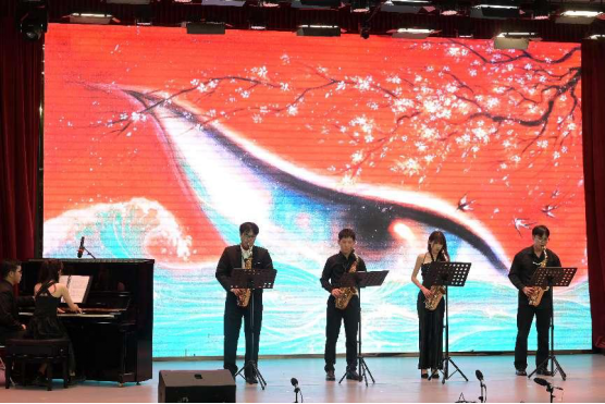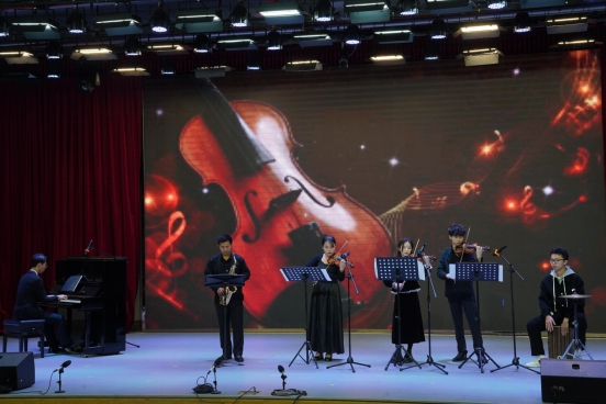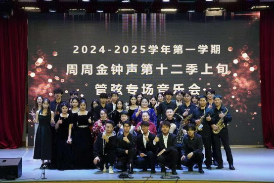 (钟艺娜)2024年12月2日下午,音乐系在十三栋一号报告厅举办了周周金钟声第十二季上旬第175期管弦专场音乐会。音乐会内容丰富多彩,涵盖了小提琴、钢琴、萨克斯等多个乐器的独奏与合奏作品。指导老师钟艺娜、李子龙老师,李丽丹副院长及实践教研室主任成幸雯与同学们一起观看了本场演出。