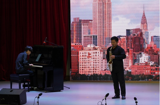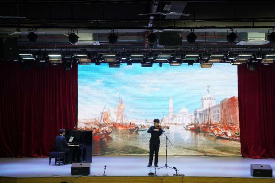 音乐会开场由何慈庆同学带来布鲁赫《g小调第一小提琴协奏曲》。他的纯熟演奏和细腻的情感表达深深打动了观众。接下来,萨克斯四重奏《大鱼海棠》则为现场带来了一场音色交织的视听盛宴,充满了现代感与民族特色的融合。劳冠林同学演奏的《来自纽约的四幅画》则以其独特的音符流动和富有画面感的演绎风格,呈现了充满纽约都市气息的音乐场景。接下来的《肖斯坦科维奇五首小提琴与钢琴二重奏》通过小提琴重奏的形式,展现了丰富的音响层次和情感波动。特邀姚佑南教授亲自指导张菀桐同学演唱了声乐独唱《我是上帝谦逊的使女》和《此生只为与你相守》,她那细腻的情感表达和美妙的嗓音打动了在场的每一位听众。